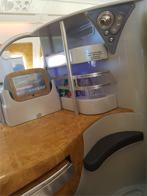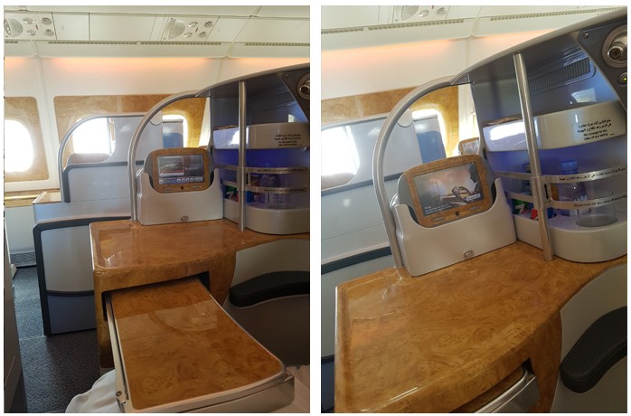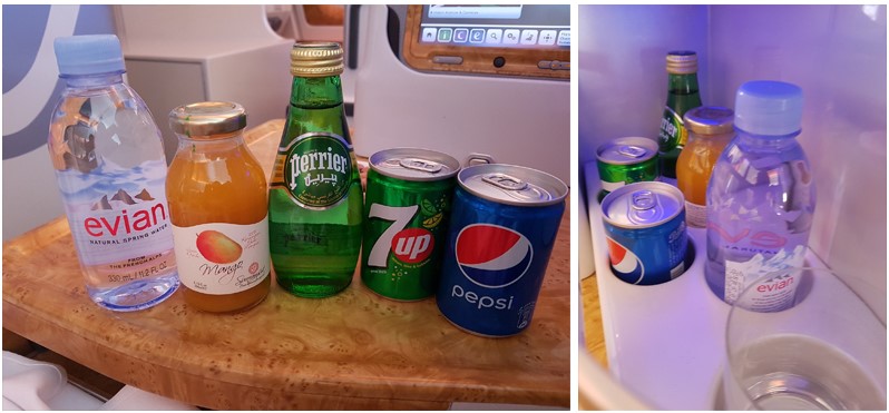บาร์ด้านข้างที่นั่ง พื้นที่ค่อนข้างกว้างและมีเครื่องดื่มบริการอยู่ในบาร์ส่วนตัวเลยคะ มีปุ่มไฟและปุ่มปรับระดับเบาะที่นั่งสามารถปรับได้ 3 ระดับ ในรูปขวามือด้านบน (ต้องขอโทษด้วยที่ไม่ได้ถ่ายรูปเบาะตอนปรับระดับมาให้ชมคะ)